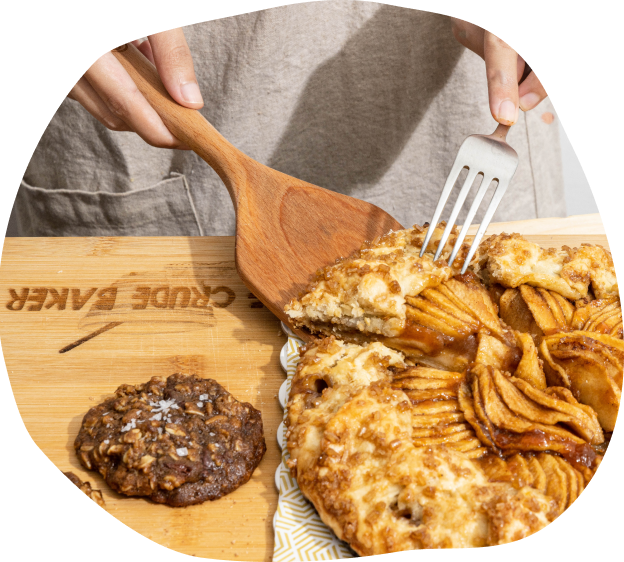 Cecile is a self-taught baker — she learned how to bake through short courses, recipe books, and online videos. She created her breads and pastries just like the rustic baked goods that she likes so much. She uses a baking style that is homelike and a little bit “crude” as seen in the “freeforms” of her galettes and the “unevens” on her breads. And for this… she thought it was just right to describe herself as a crude baker.